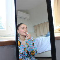 בסט החמישי צילמתי את ירדן חברה שלי,  ירדן מתאפרת בחדרה במראה עם פי'גמה. הצילום נעשה באור טבעי מחלון, תוך השתקפות במראה.